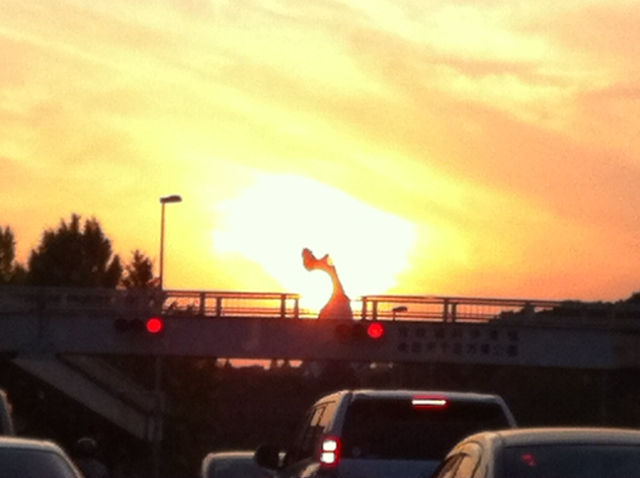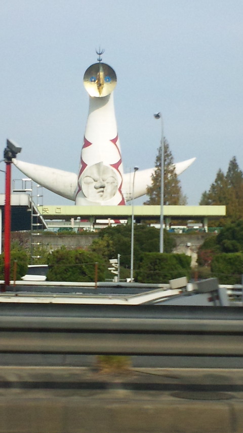 朝、ご挨拶した太陽の塔が、太陽を背負っていた(笑)