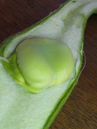 帰りに買い物をしたら、鞘のついたソラマメが売っていた。