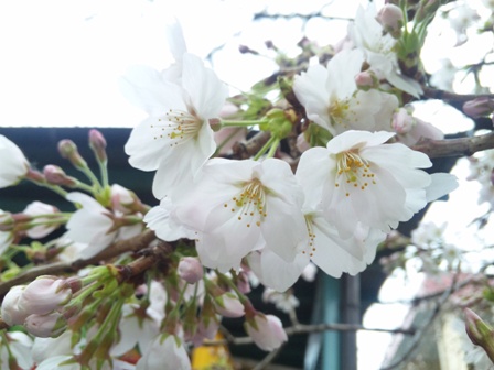 家に戻ると、隣家の桜の花が咲いているのを発見した。