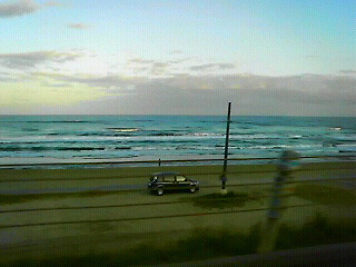 左に日本海を見ながら走る。