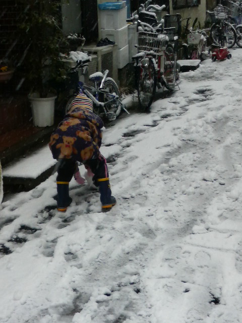 寒かったけど、近所のお友達も一緒に雪遊び♪